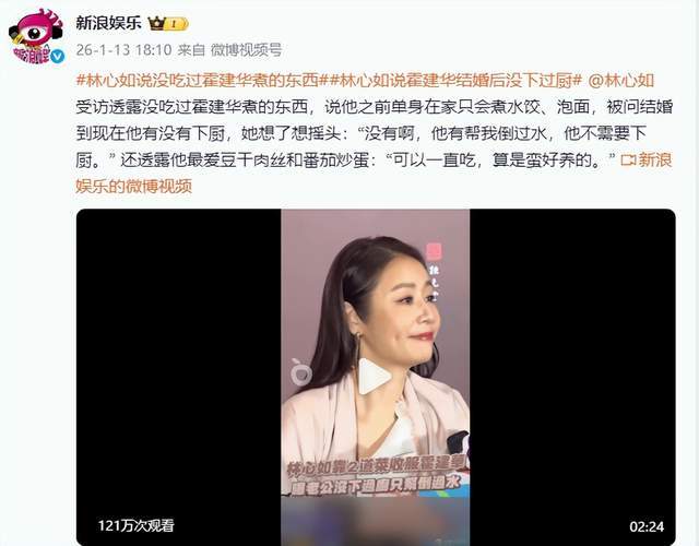 早前,林心如受访,被问及到老公霍建华的时候,她透露其结婚之后就没有下过厨。