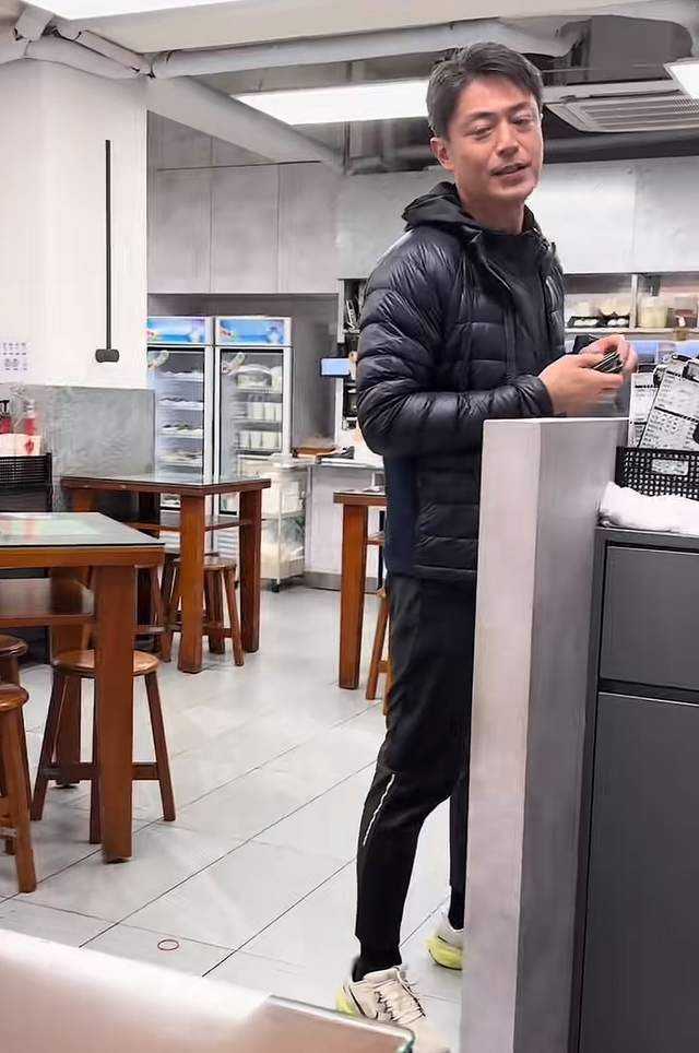 付钱的时候,见的霍建华仍然是一身“老干部”的装扮,黑色的上衣搭配运动裤以及运动鞋,想来是结束运动没有多长的时间,便前往小餐馆吃饭。
