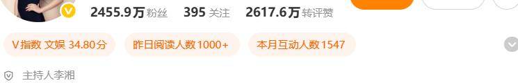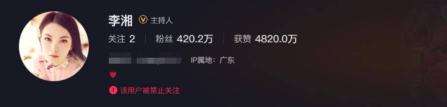 李湘被禁止关注风波已经发酵一天有余,她的几个社交平台都出现了一定程度的掉粉。