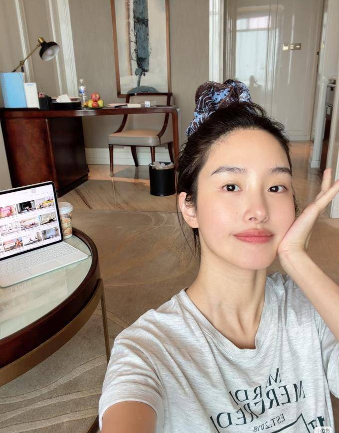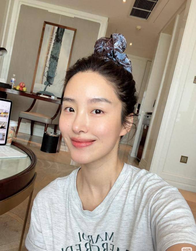 照片 中的杨采钰刚 刚结束工作回到家, 完全摆脱了工作 带来的疲 劳。她的头发 被一个蓝棕 相间的发圈 轻轻挽 起, 身穿一件简 约的浅灰色字母T恤 。她的素颜 使她的皮肤 看起来非常细腻 和透亮,笑 容甜 美而又 充满活力。她的眉 宇之间 充满了一种轻松 的感 觉,这 样的状态 真的让人眼前一亮, 她就像一个 充满 活力的少女, 完全看不出 她是已婚 之人!