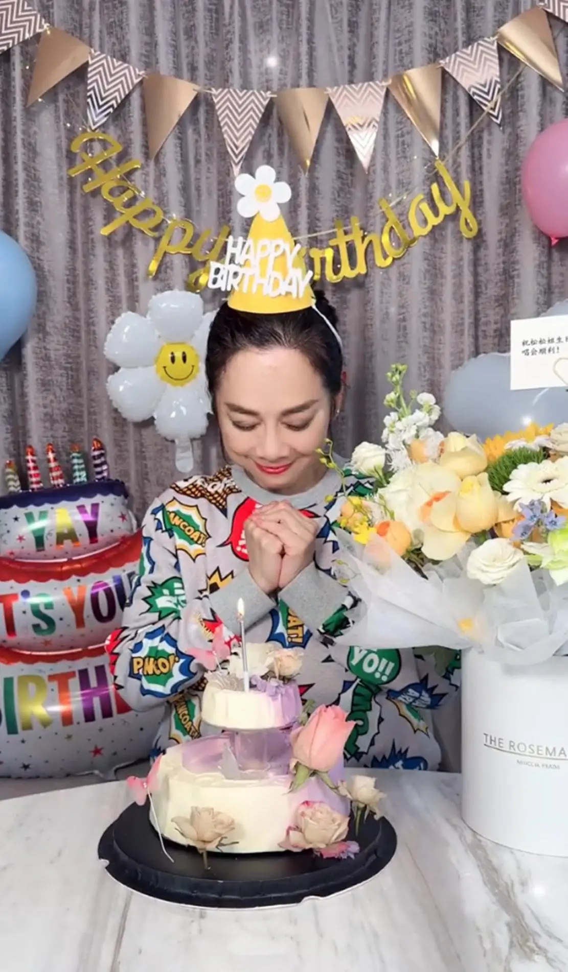 为老婆准备鲜花蛋糕庆生的张铎,亲自为她点燃生日蜡烛,随后镜头一转,寿星陈松伶出镜了。