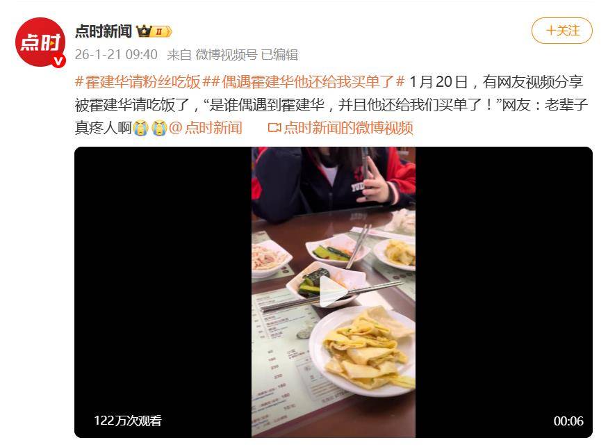 据1月21日报道,1月20日,一则“被霍建华请吃饭了”的分享视频,让这位久未在热搜上“营业”的演员,以一种格外温暖的方式重回大众视线。视频发布者激动发文:“是谁偶遇到霍建华,并且他还给我们买单了!”评论区瞬间被“老辈子真疼人啊”的感叹刷屏。