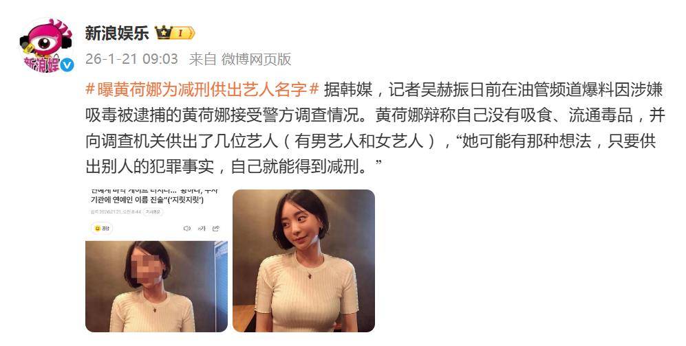 一记来自审讯室的“重磅供词”,让整个韩国娱乐圈再度风声鹤唳。据韩媒1月21日报道,因涉毒、洗钱等重罪被引渡回国的南阳乳业外孙女黄荷娜,为争取减刑,已向调查机关供出多名涉毒艺人名单,其中包括当下爆红的男团成员。消息一出,网友瞬间炸锅:“熟悉的配方,熟悉的味道,她又要开始‘毁灭式自救’了?”