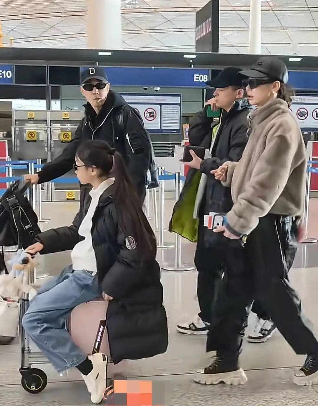 Lucky和戚薇坐下来候机的时候,看到她发根的位置染了紫色头发。小姑娘也开始爱美了,不过这一撮紫发不显眼,如果不仔细看都发现不了。