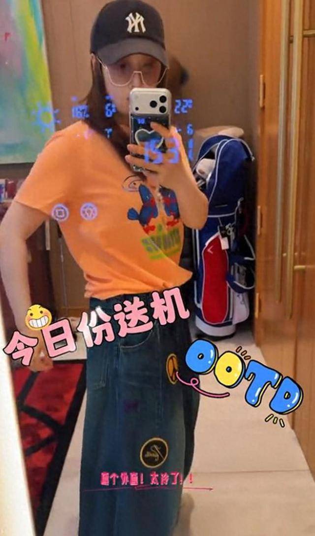 52岁的她,穿着橙色T恤配牛仔裤,看起来就像30岁出头,和儿子站在一起更像姐弟。