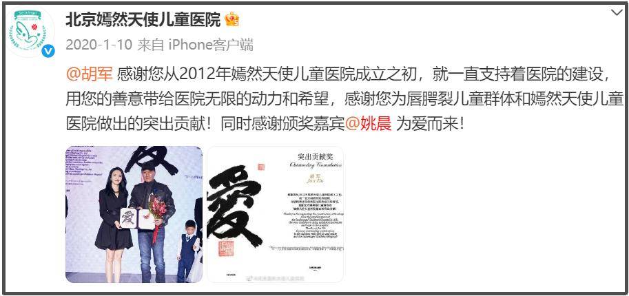 更是被邀请为颁奖嘉宾,为给医院做出突出贡献的胡军颁奖。可以说姚晨和嫣然天使儿童医院的关系匪浅,也怪不得她会为李亚鹏发声,毕竟以前就曾关注过这个项目。