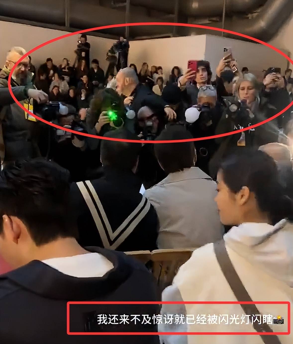 周围嘉宾非富即贵,身着华丽时装配饰亮眼,摄像机更是清一色对准这排座位,长枪短炮全程捕捉三人动态,国际巨星的排面拉满。