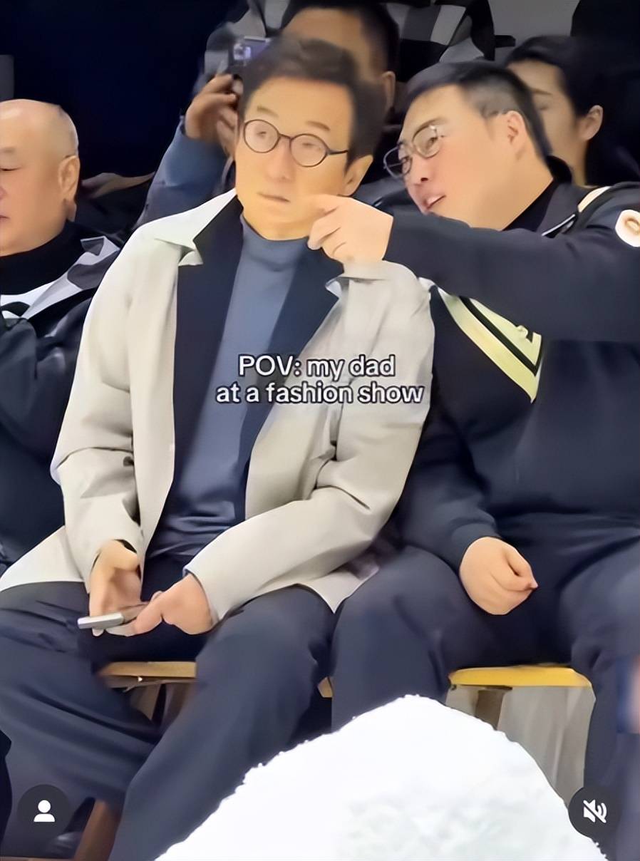 网友看了都忍不住调侃“李宁秀场混进一位热心市民”,还戏称这是“中老年逛商场标配穿搭”。