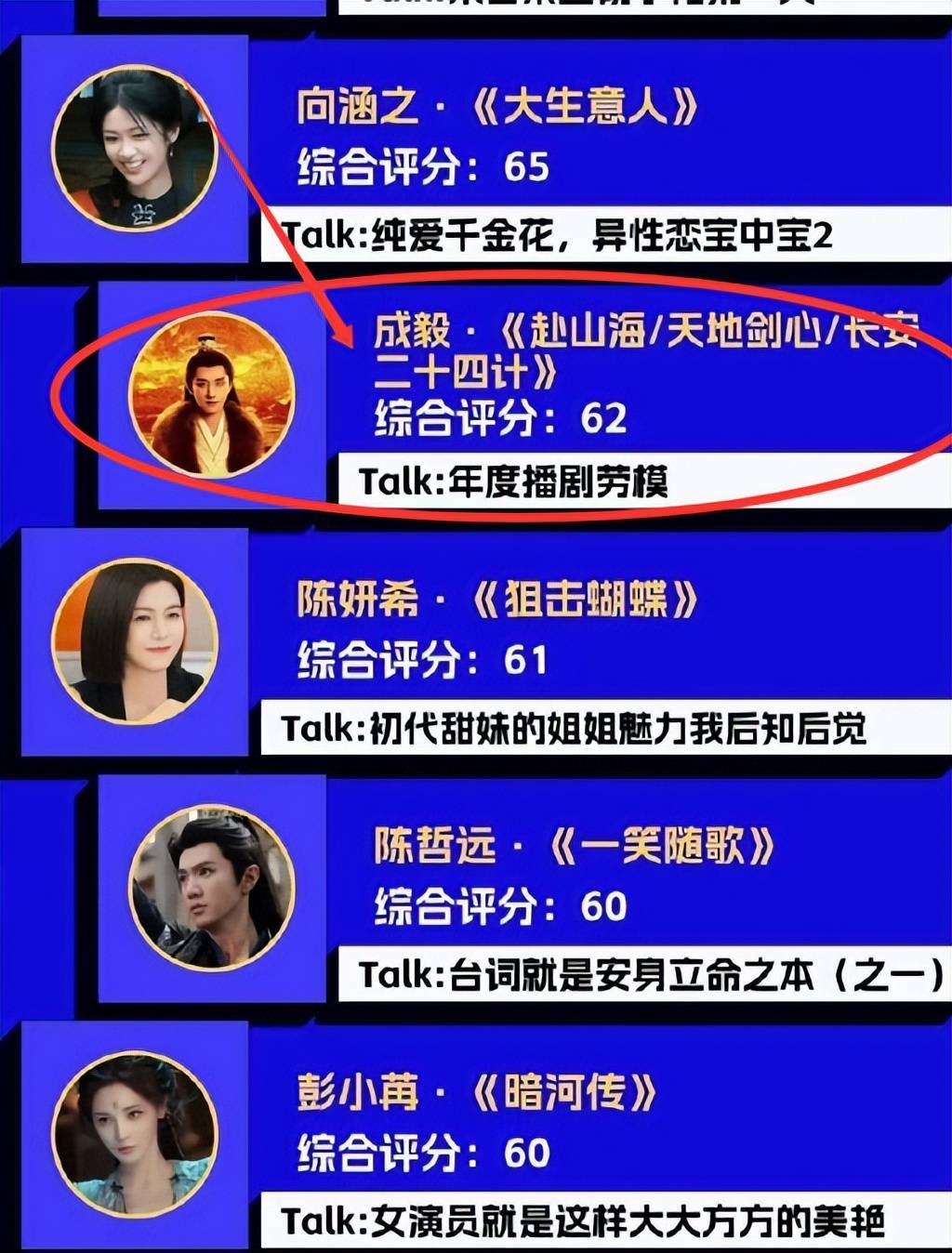说完了前五名,咱们再来成毅。