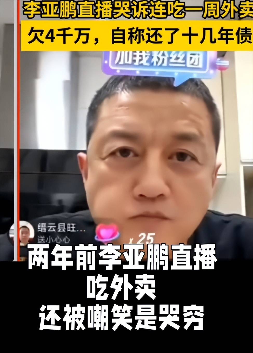 李亚鹏却反其道而行之,自己正身处债务困境,却把仅有的直播打赏全捐出去,还主动关掉这个收入渠道。