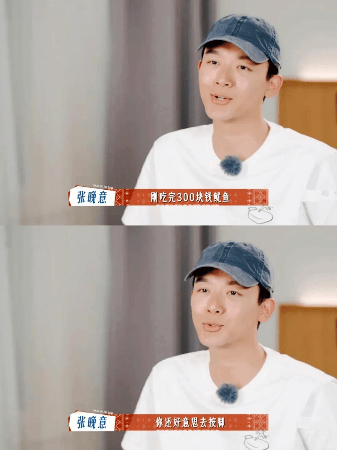 一趟长途旅行,别人行李塞满护肤品,张晚意从包里掏出一块三合一香皂,淡定表示:“洗面奶、洗发膏、沐浴露,一块解决。” 被问及是计划型(J)还是随性型(P)人格时,他一脸茫然:“什么东西?” 弄清概念后大手一挥:“没错,我就是P!” 他晚上用冷水洗头,随手抹两下就算干了,吓得姐姐们赶紧拉他去吹头发。为表感谢,他真诚地递上自己的香皂问:“要不要护肤?” 吓得马思纯连忙婉拒。