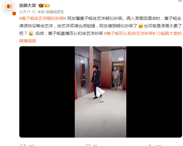 网友曝光的视频显示,黄子韬滑雪后独自快步走向酒店,未与身后约两米处的徐艺洋同步或交流,徐艺洋被拍到表情僵硬、面对路人镜头时笑容勉强。部分观察者结合黄子韬“全程无交流”的状态,推测两人因琐事发生争执。