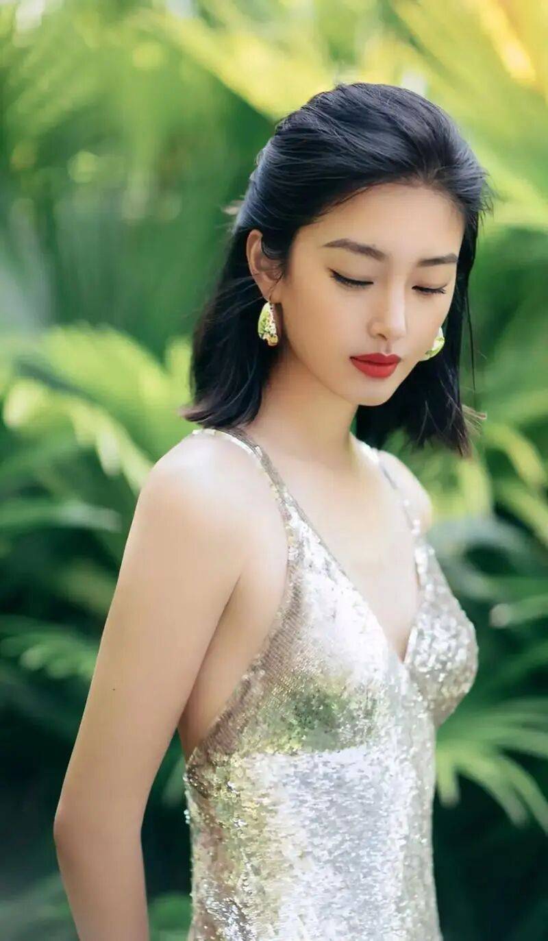 杨采钰穿着红色抹胸衣裙,她俏脸清丽脱俗,乌黑的秀发飘逸,侧身露出白皙的香肩和事业线,曼妙的身材曲线,绝对性感撩人!