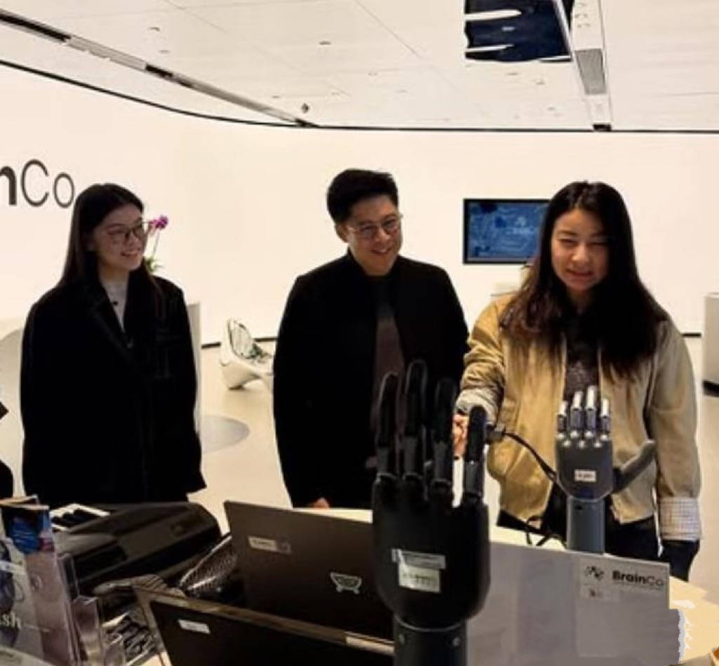 研发人员和创始人团队向郭晶晶夫妇展示了非侵入式的脑机接口,并展示了这些设备如何从实验室走向应用。