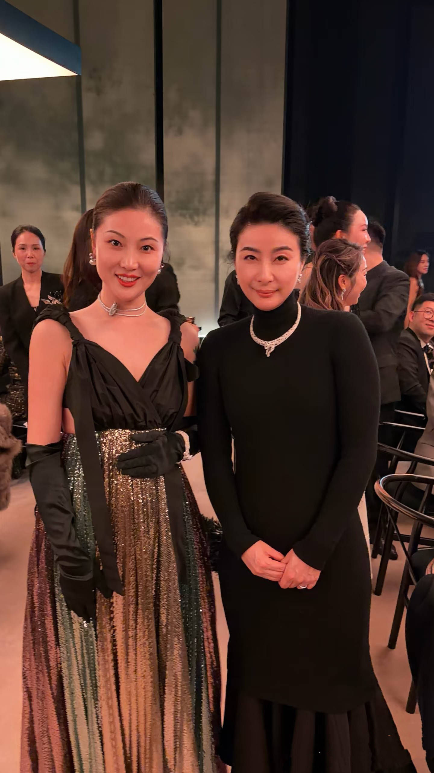 黑色修身的连衣裙,配上奢华贵气的珠宝,在她身上一点都不夸张,反而有一种低调沉稳的气质。