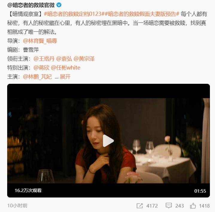 目前,《暗恋者的救赎》已经官宣定档,从官方发出的预告片上看,这部剧的质量还是不错的,各位读者,你们期待这部剧吗?