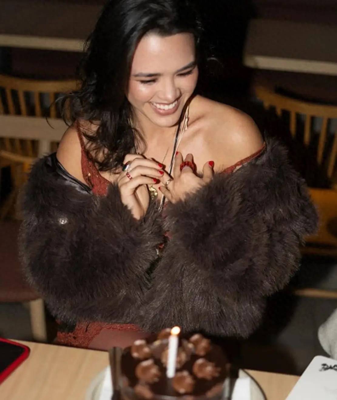 穿吊带裙配皮草,跟男友热吻照直接刷屏,谁看了不说句美女!