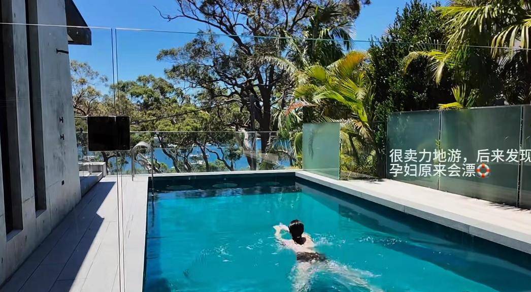 她都孕 8 个月了,居然还在别墅泳池里游泳!