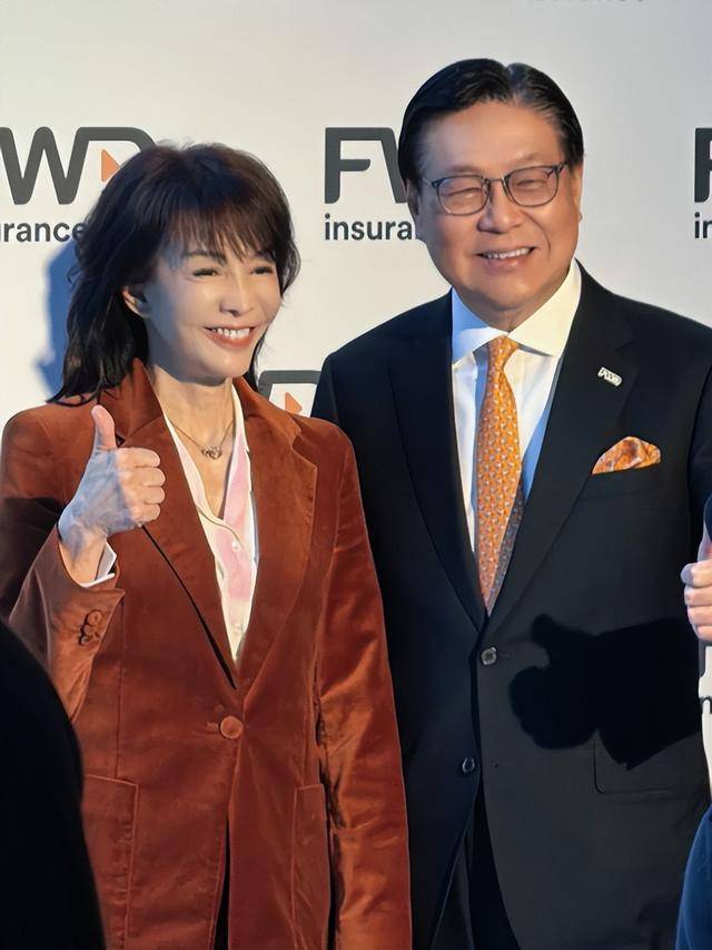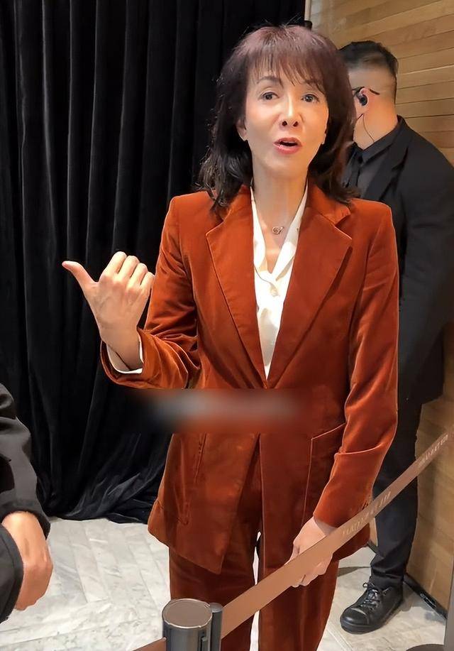 当68岁的郑裕玲身着玫红丝绒西装出席FWD活动,披肩发搭配精致妆容气场全开。