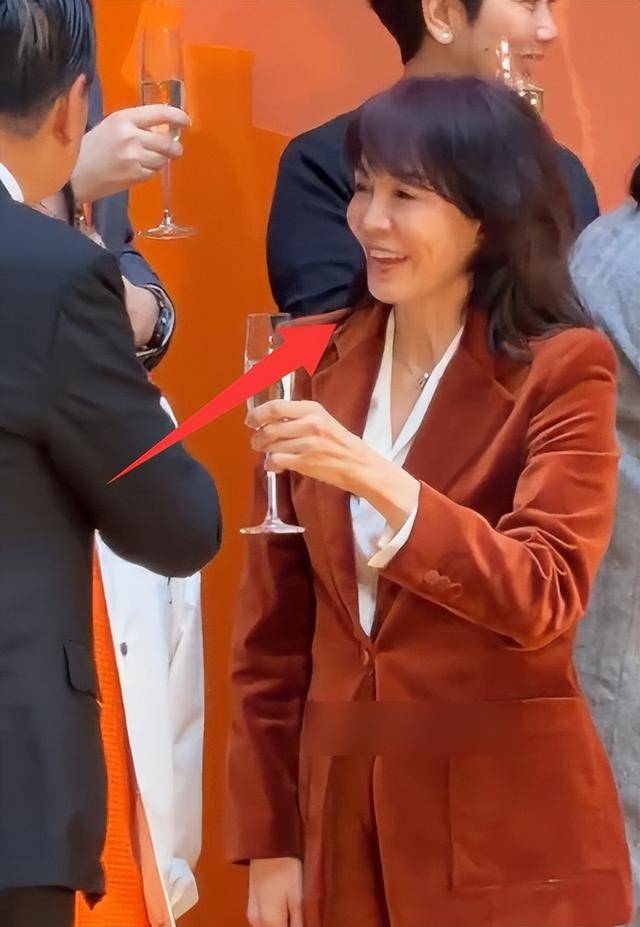 她一出场,气势特别的强,把一件玫红丝绒西装穿出了独有的格调,面料的光泽感衬得她肤色透亮,合身的剪裁勾勒出依旧挺拔的身形。