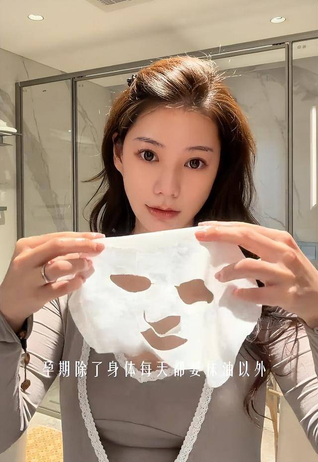 北京冬季干燥的气候让她特意敷上补水面膜,对着镜子拍摄时,睡衣勾勒出她只胖肚子的身形。