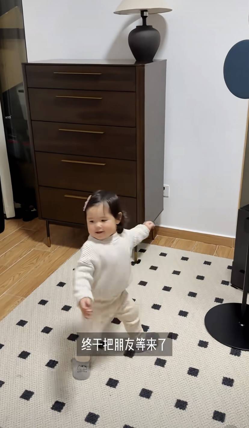 回到家等了一会,好朋友就带着小朋友来了。小小J是个胖嘟嘟的小姑娘,非常可爱。在王冠的大别墅里,尽情地玩耍,一点不怕生。