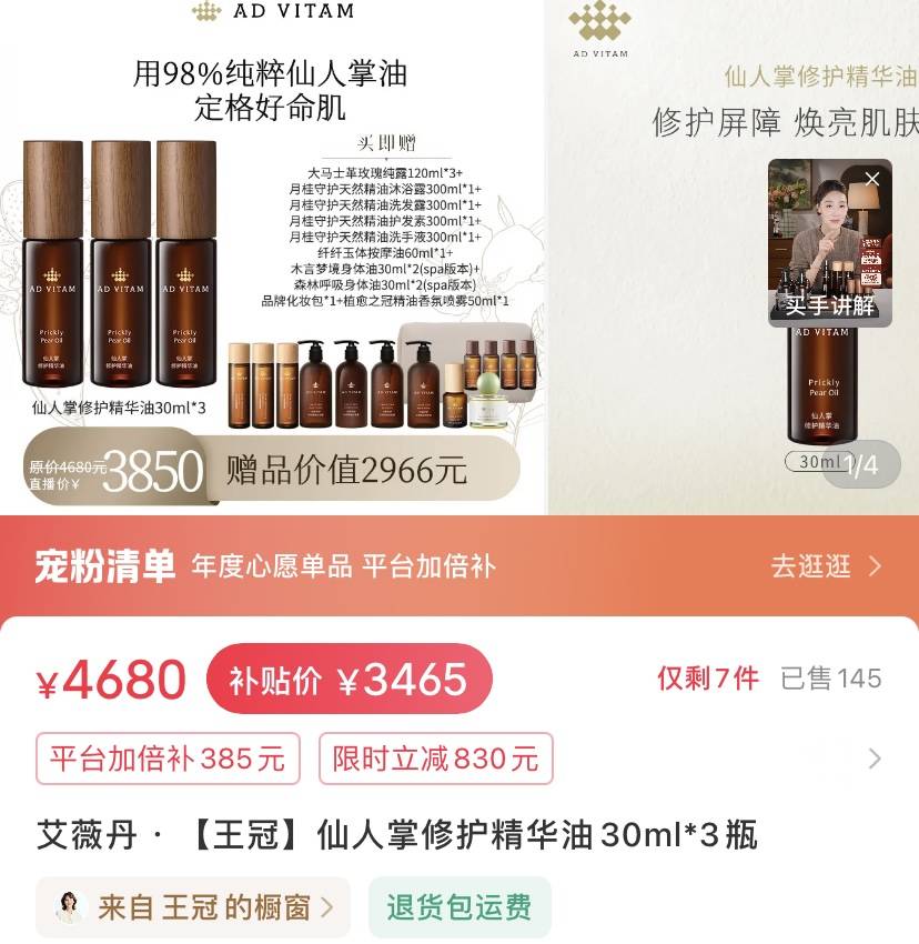 王冠用的精华油也不便宜,90毫升就要三千多。果然美丽的容颜,都是花钱堆出来的!