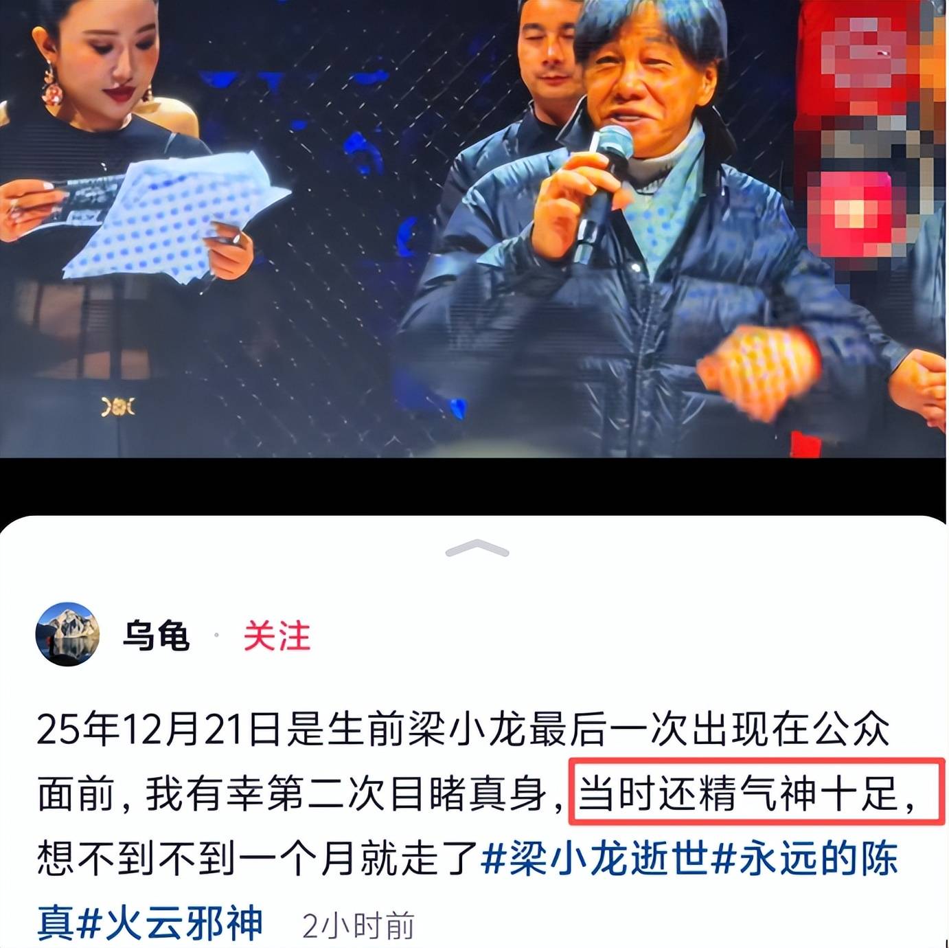 有在现场见过他的网友也爆料说,当时他真看不出过一个月会去世的样子,精神气十足。