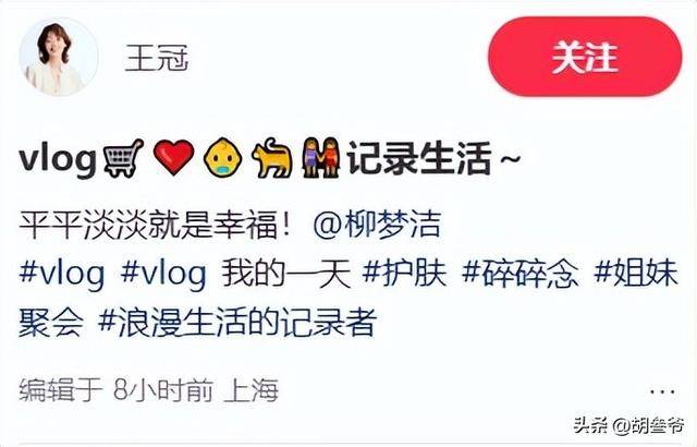 婚后的王冠,渐渐淡出了公众视野。她关掉了闹钟,每天睡到自然醒;在院子里种满了蔬菜,收养了两只流浪猫。
