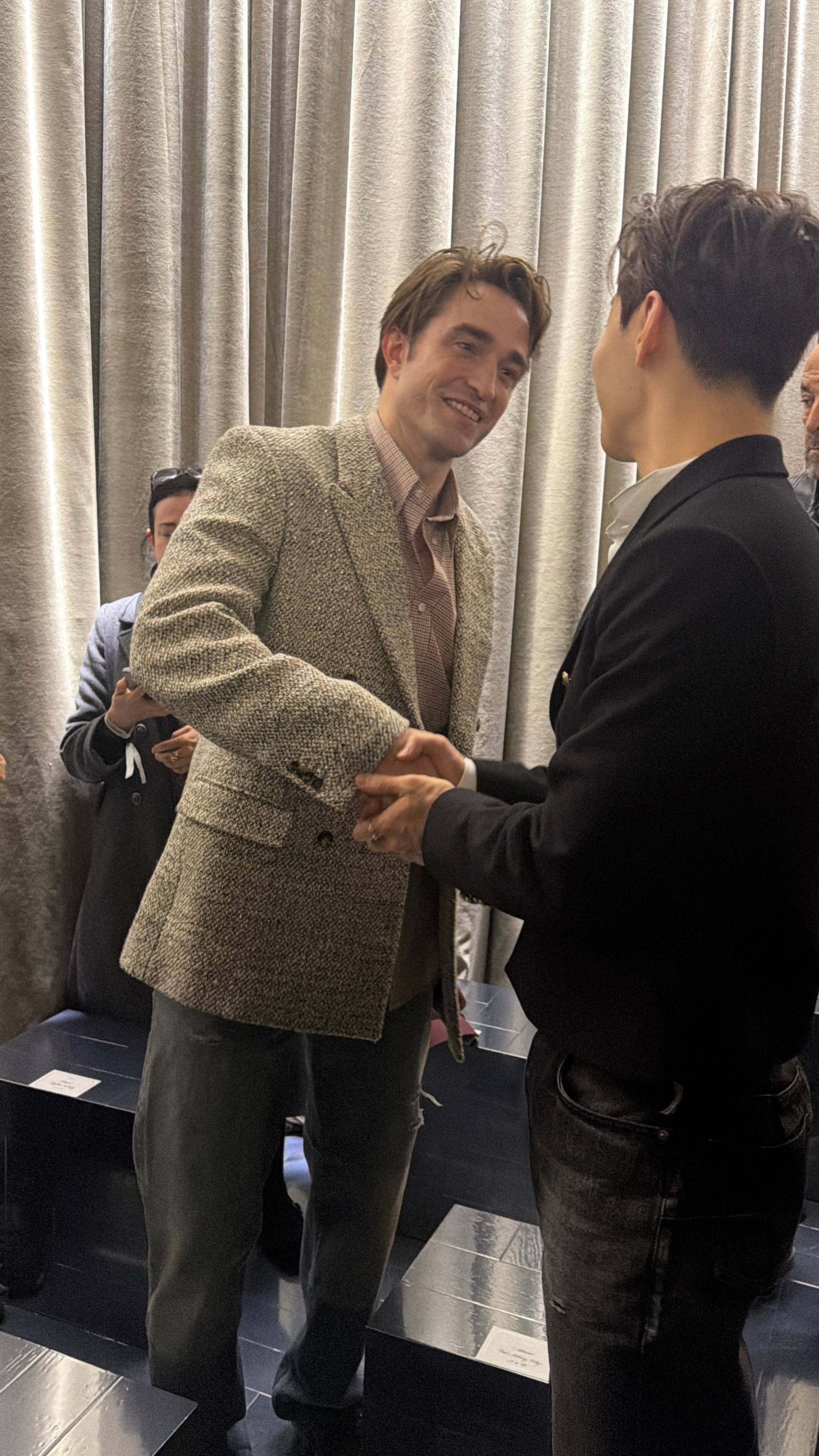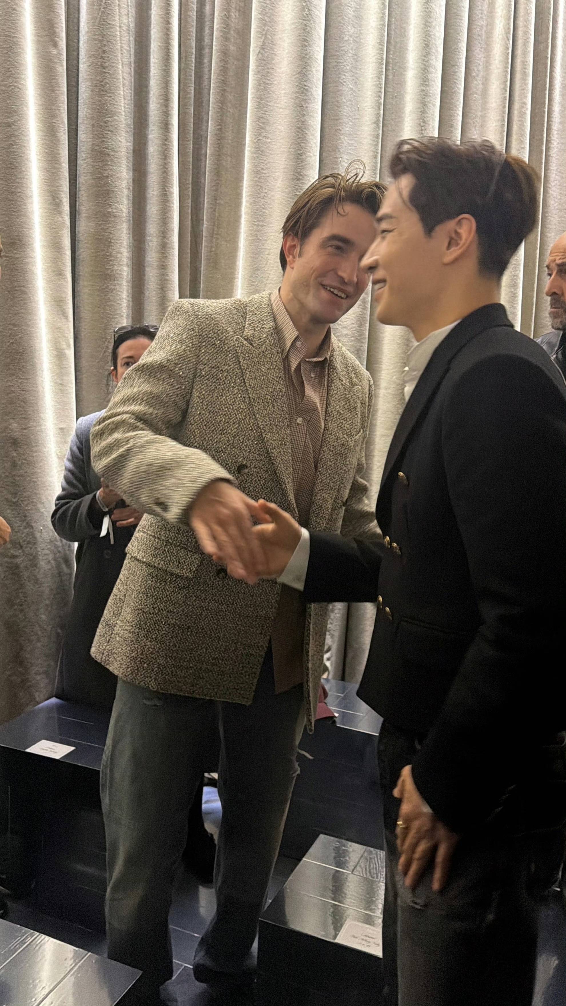 就在全网沉浸在“青春圆满”的狂喜中时,真相却来得猝不及防。有细心的海外网友指出:“这根本不是罗伯特·帕丁森!帕丁森近期在拍新片,根本没去巴黎时装周,这位是迪奥邀请的小众设计师品牌创始人!” 随后更有网友扒出两人对比图,虽然眉眼轮廓有几分相似,但帕丁森标志性的深邃眼窝和慵懒气场,与同框艺人还是有着明显区别。