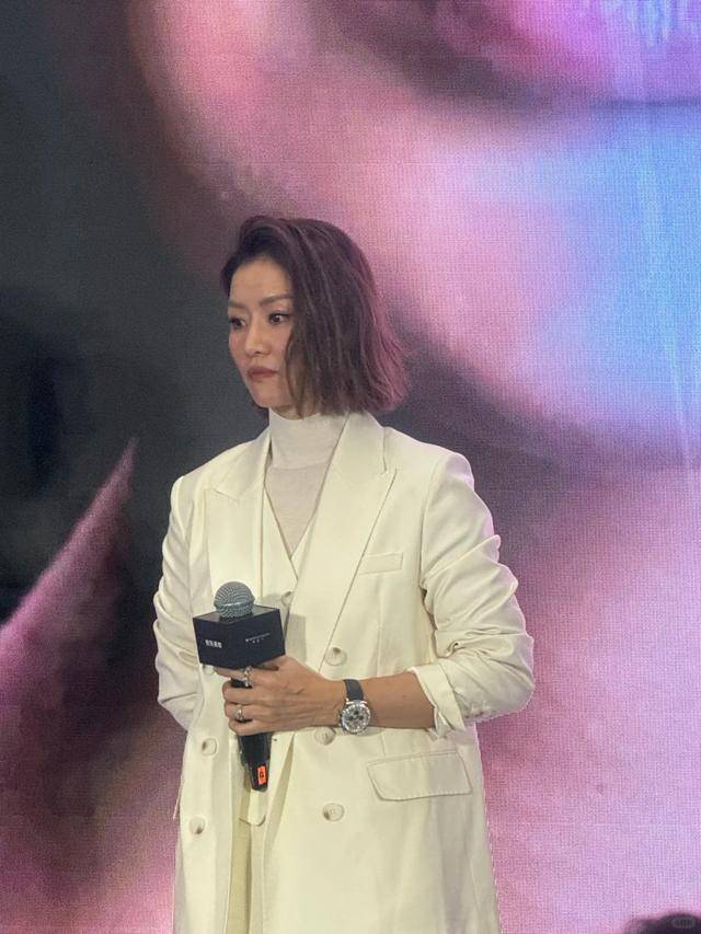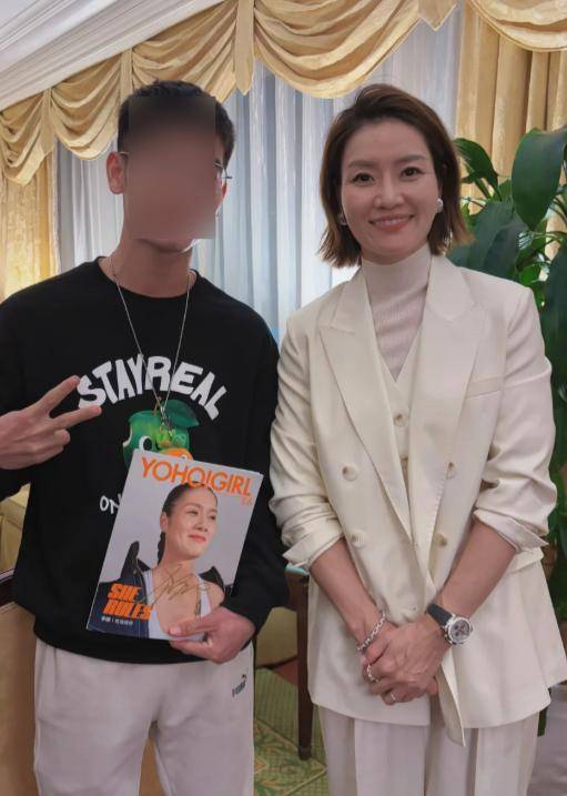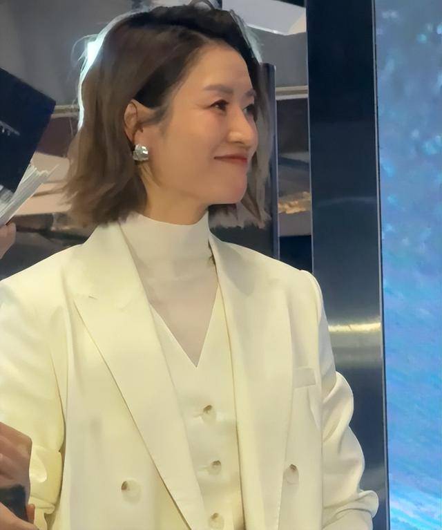 她穿着一身简约白色套装,一头短发利落地梳在脑后,标志性的爽朗笑容依旧有感染力,面对粉丝合影请求来者不拒,宠粉程度和从前一样。