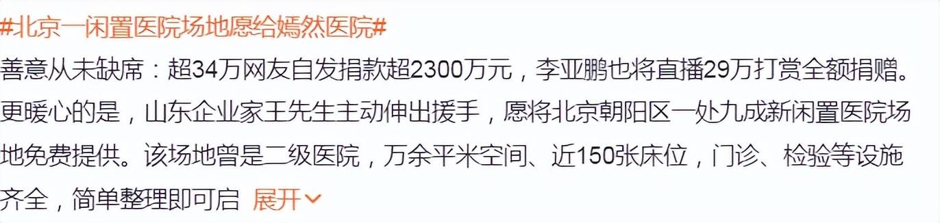 在网友们的努力下,嫣然医院的房租已经筹了2300万,基本上可以覆盖后续的续租问题了