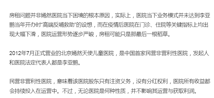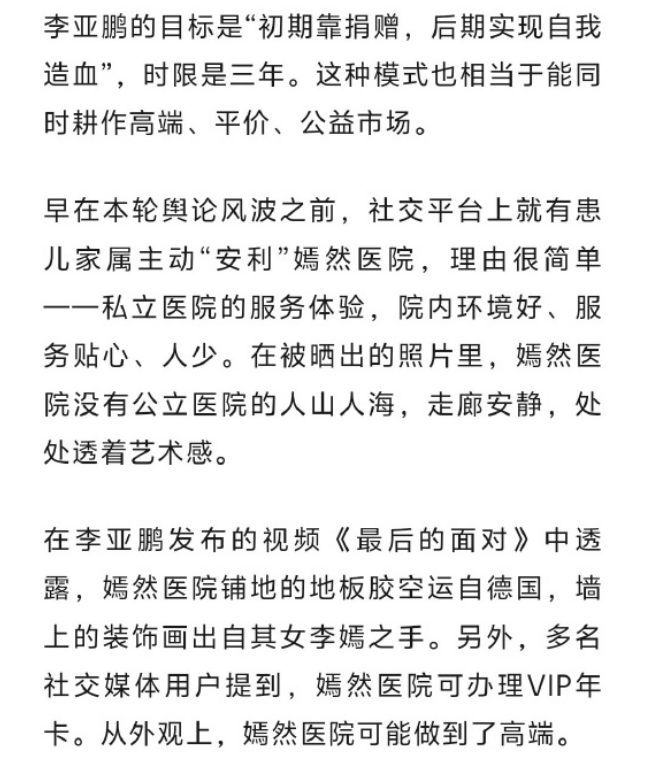 但有一点,不少媒体指出来了,李亚鹏当初的设想,是希望医院走高端医疗的模式,用经营利润覆盖唇腭裂手术的补贴成本,奈何疫情之后,医院的经营情况急转直下