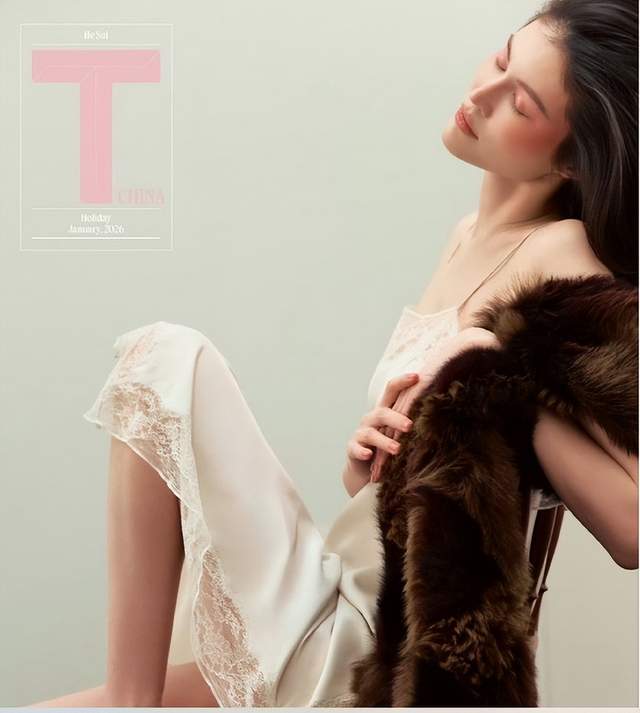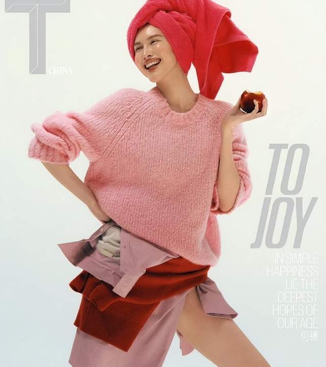 《T锦绣》开年刊,她穿着奶油白西装,笑容轻松得像去菜市场。但仔细看,针织衫的领口微微张开,西装下摆"恰好"遮住腰线。
