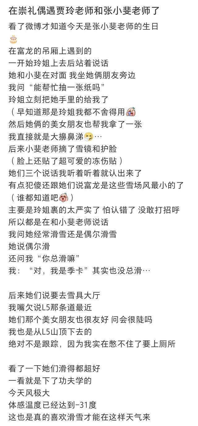 值得一提的是,记得在张小斐1月10日生日那天,也有网友在河北崇礼滑雪场遇到他们,并晒出了照片。