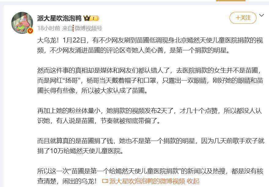 1月22日的互联网像被按了夸赞开关,北京嫣然天使儿童医院门口一段短视频突然炸锅 —— 画面里穿白色外套的女生戴着黑帽口罩,只露出一双明亮的眼睛,扫码捐款后脚步匆匆,被网友一口咬定是演员苗圃。