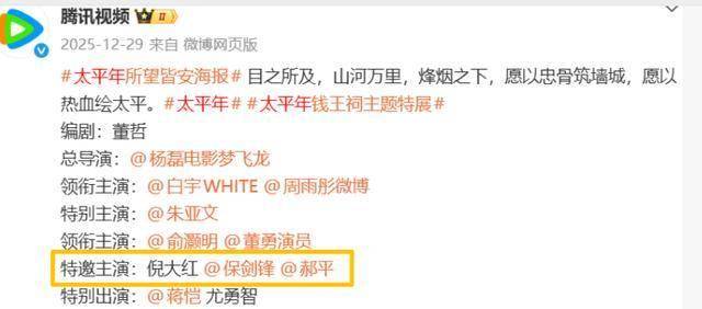 不过细看这次剧集的播出,会发现平台对他还是挺微妙的,原本在去年的官宣里,他还被称呼为“特邀主演”,跟倪大红放一栏。