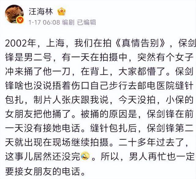 可令人啼笑皆非的是,除了汪海林和蔡姐这两位已经几乎半退圈的,圈内没有任何明星站出来帮保剑锋发声,都是唯恐避之不及。