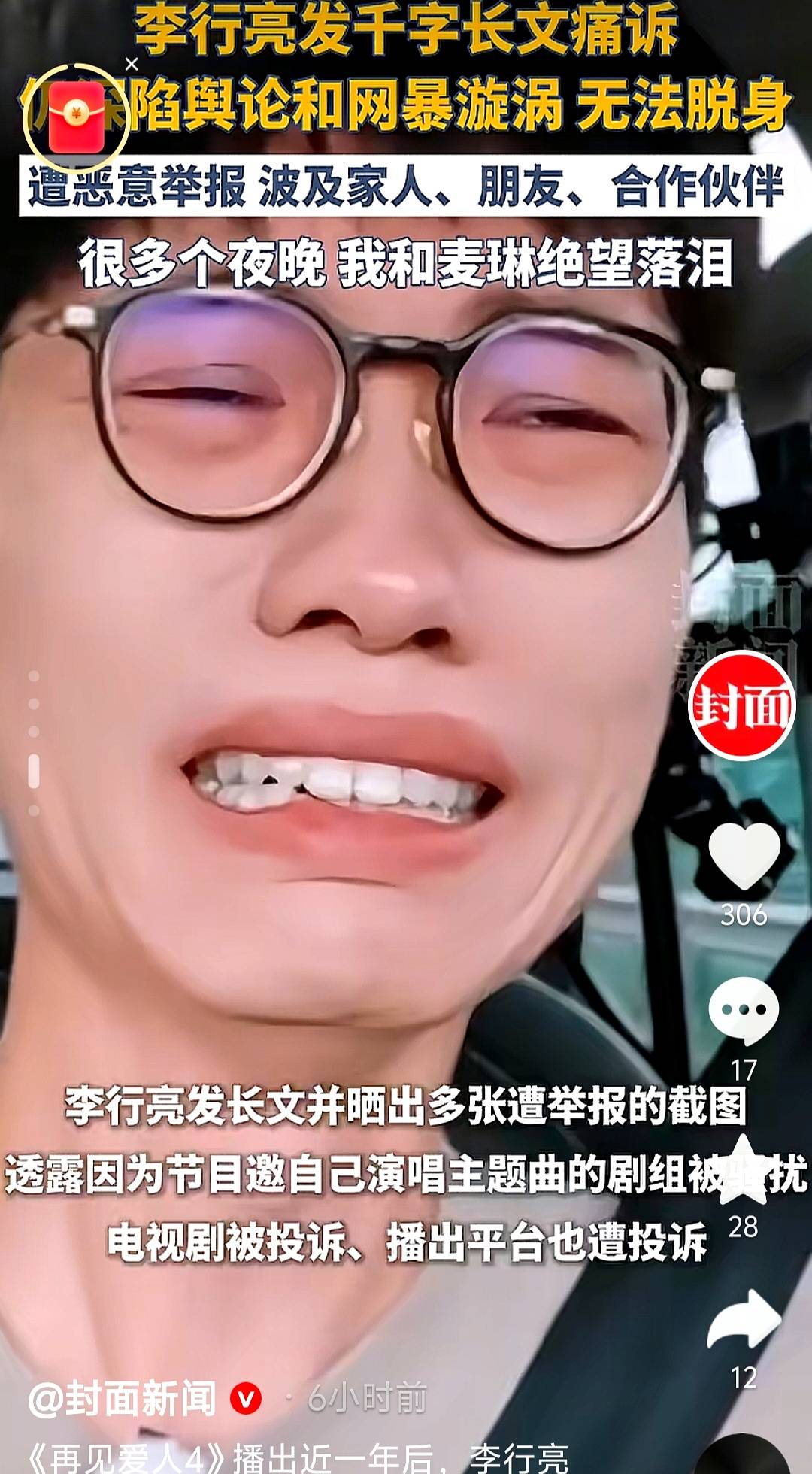 2026年1月,歌手李行亮在腾讯视频节目《因为是想写成歌》中,首次公开谈起因参与综艺《再见爱人4》引发的连锁反应。他坦言,自己因被网友贴上“传播畸形婚姻观”&ldqu