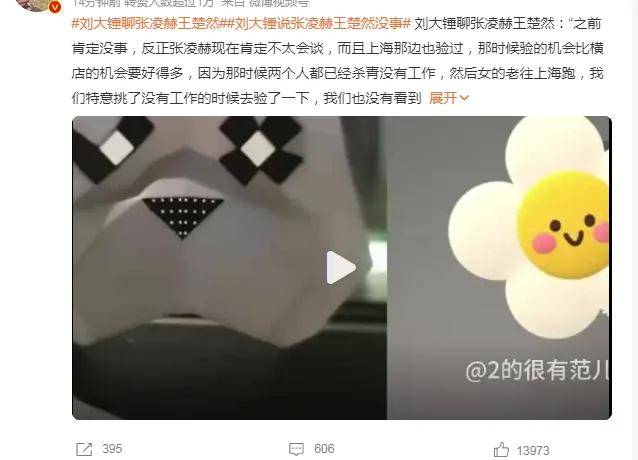 2026年1月23日直播中,刘大锤聊张凌赫王楚然:“之前肯定没事,反正张凌赫现在肯定不太会谈,而且上海那边也验过,那时候验的机会比横店的机会要好得多,因为那时候两个人都已经杀青没有工作,然后女的老往上海跑,我们特意挑了没有工作的时候去验了一下,我们也没有看到张,外表看着关系不好那是剧组的正常操作,因为男的太火了,女的但凡有一点表现一定会被粉丝追着骂,这就是女艺人的弱势所在,女艺人永远是被怀疑被骂的那一方,而且又合作得那么火,而且我们听到想与不想这块特别坚定,不想他是因为知道他现在流量那么高,而且不能出任何岔子,所以人家就属于想要单身一人好好搞事业”