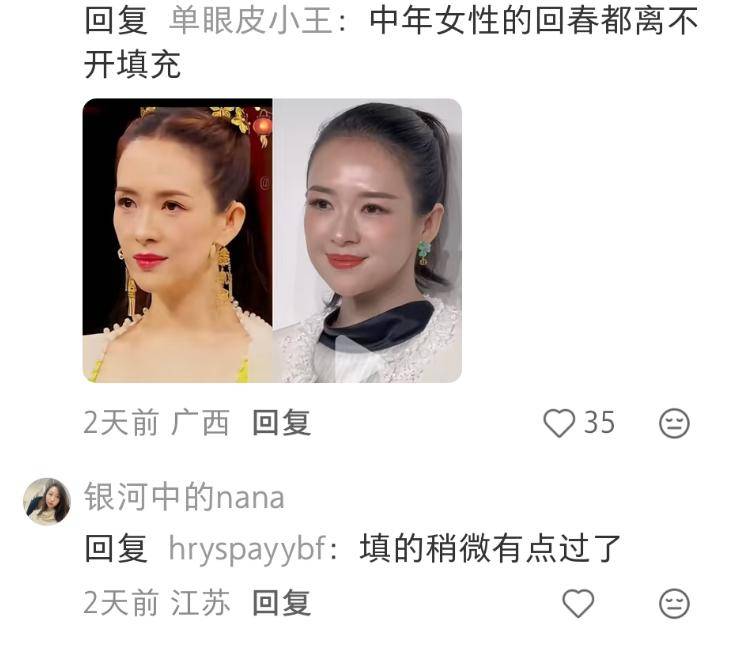 如果是正常的发胖,网友可能还不会有这么多的质疑,但很多人觉得她这发胖并不正常,虽然脸变圆了,但是把她脸上那些凹陷的地方全都填补了,泪沟也没了。