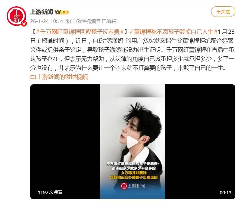 据悉,女方已于1月19日向杭州法院提起诉讼,要求确认亲子关系并强制执行抚养费。童锦程在直播中则表示正在“等待判决”。这场风波已从私人纠纷演变为一场关于生育责任、道德界限与法律义务的公共讨论。