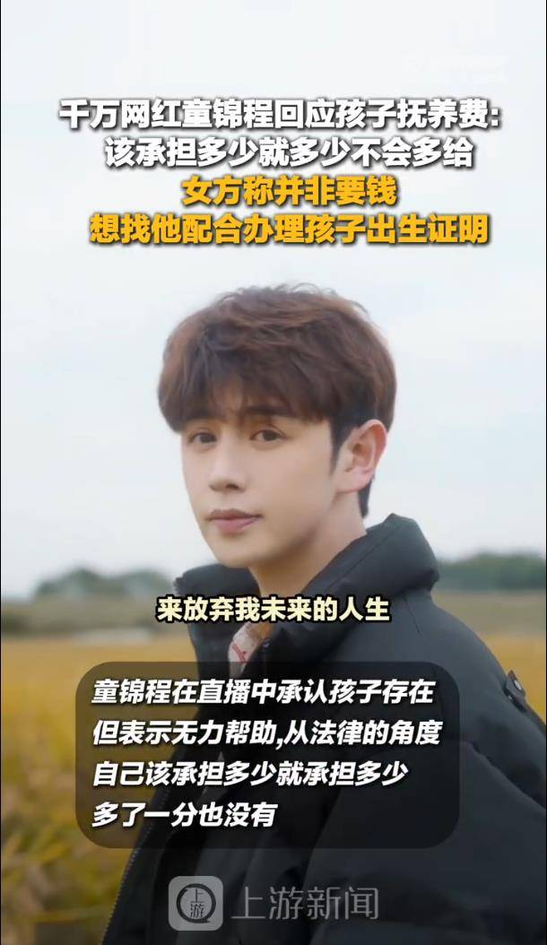 直播中,童锦程将此次生育定性为“非自愿生育的结果”,并明确表示仅愿承担法律规定的抚养义务。他强硬表态:“从法律的角度自己该承担多少就承担多少,多了一分也没有。”甚至发下毒誓,称法律之外多给一分钱则“全家必死”,将情感责任切割得干干净净。