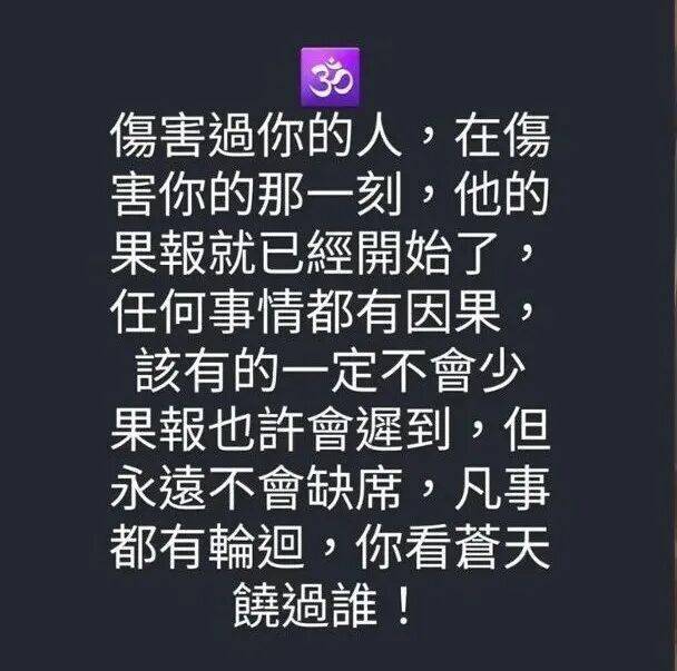 Rocky今天于社交网上载黑底白字图片回应说︰「伤害过你的人,在伤害你的那一刻,他的果报就已经开始了,任何事情都有因果,该有的一定不会少。果报也许会迟到,但永远不会缺席,凡事都有轮回,你看苍天饶过谁!」
