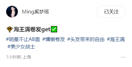 奚梦瑶晒“海王满卷发”!换新发型衬得皮肤白背薄,何猷君真会挑,也难怪会对她生理性的喜欢了。
