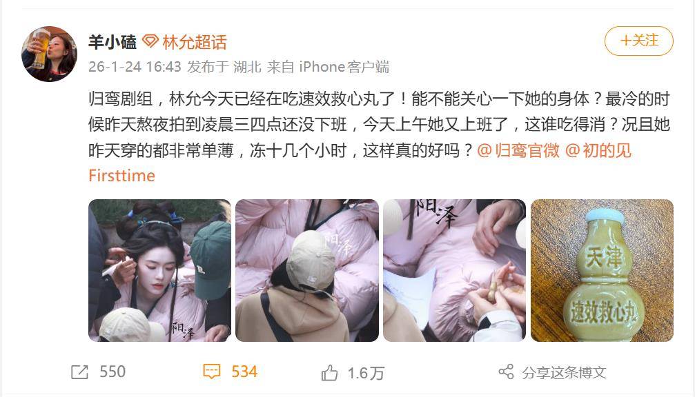 据1月24日网友爆料,一则关于演员林允在《归鸾》剧组拍摄期间被目击服用速效救心丸的消息,迅速点燃了网友对艺人工作强度与剧组管理方式的激烈争论。