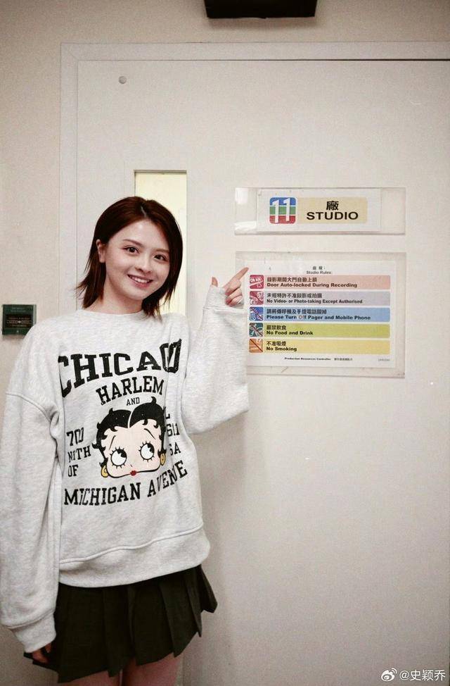 从史颖乔的社交动态中不难发现,她分享了多张在公司各个角落拍的照片,照片中的史颖乔穿着白色的印花卫衣,百褶裙搭配长筒靴,看起来少女感满满,她个头不高,给人一种萝莉的感觉。
