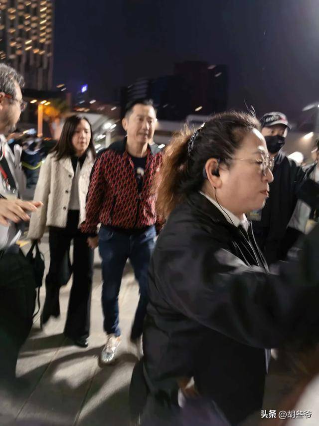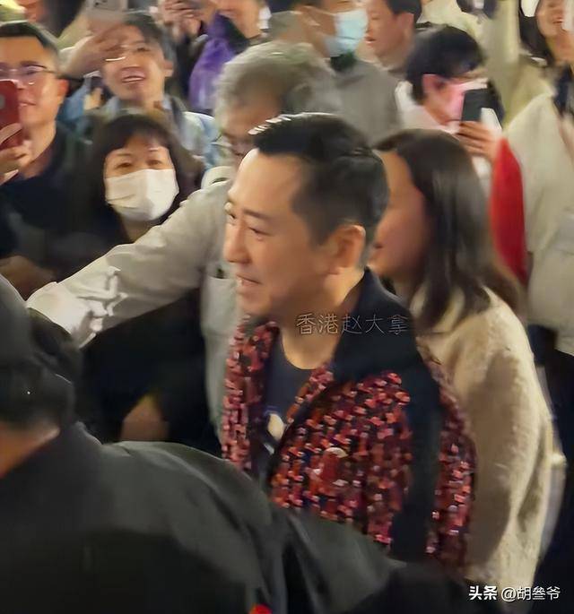 粉丝围上来拍照时,他还贴心地把妻子护在身后,满满的都是爱意。