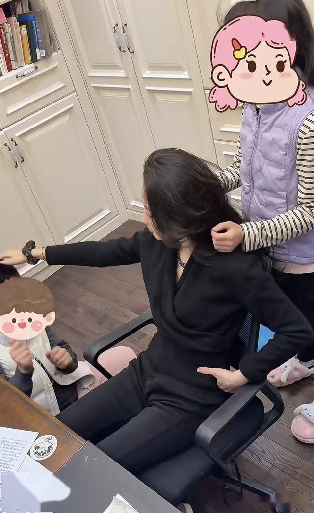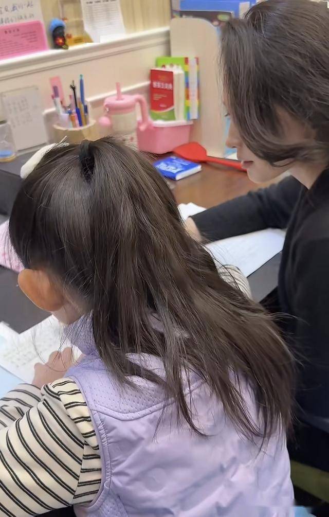 森林北给俩娃买了长书桌,她正好坐在中间,一边一个方便讲题。女儿写作业的时候,她就再去儿子那边讲解,孩子多了就是要多花心思培养啊。
