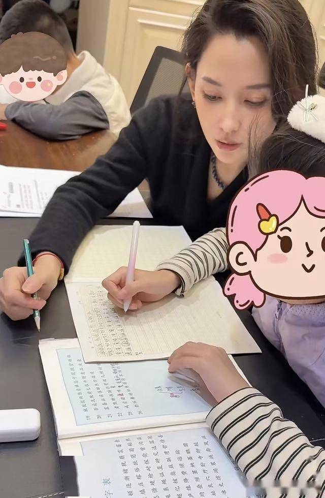 她不工作的时间和普通带娃妈妈们一样,吃饭收拾好之后就要盯着孩子们写作业,而且森林北还是一个人辅导俩娃,感觉更不容易了。